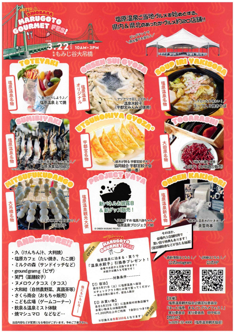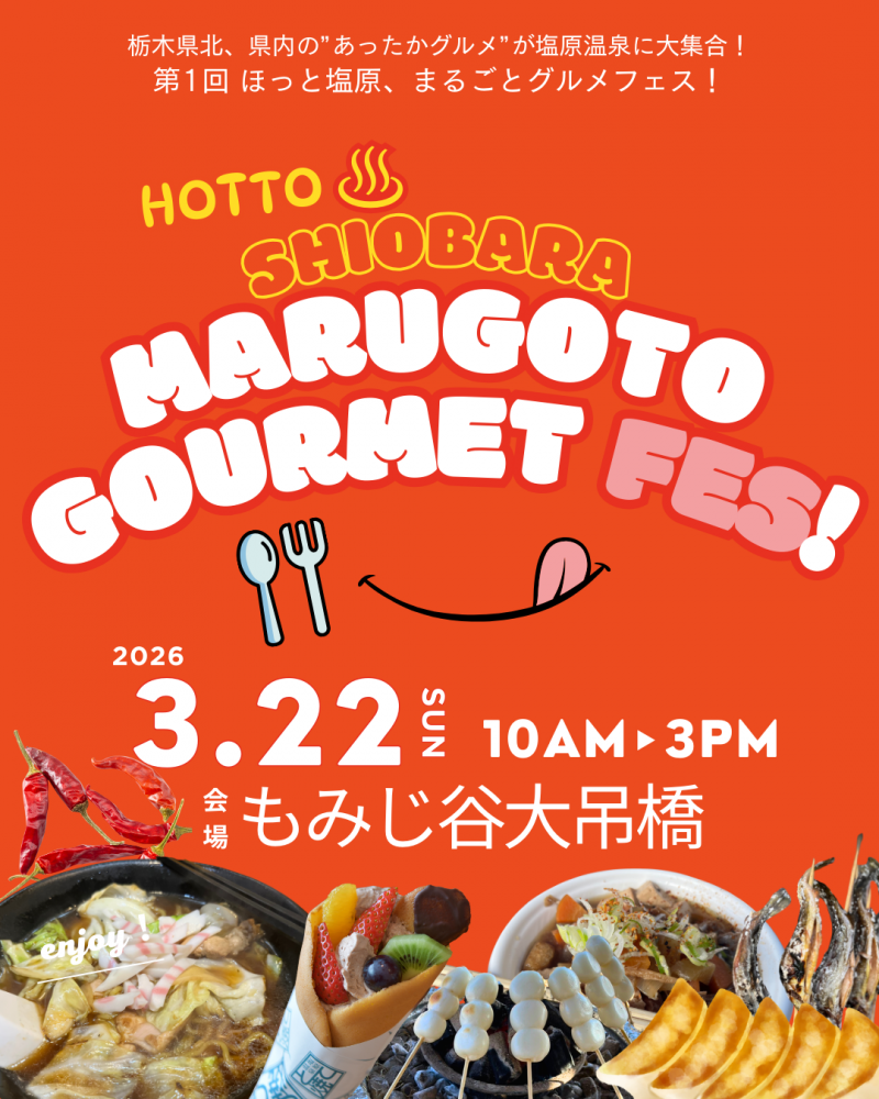 3月22日に「ほっと塩原、まるごとグルメフェス」が開催されます。